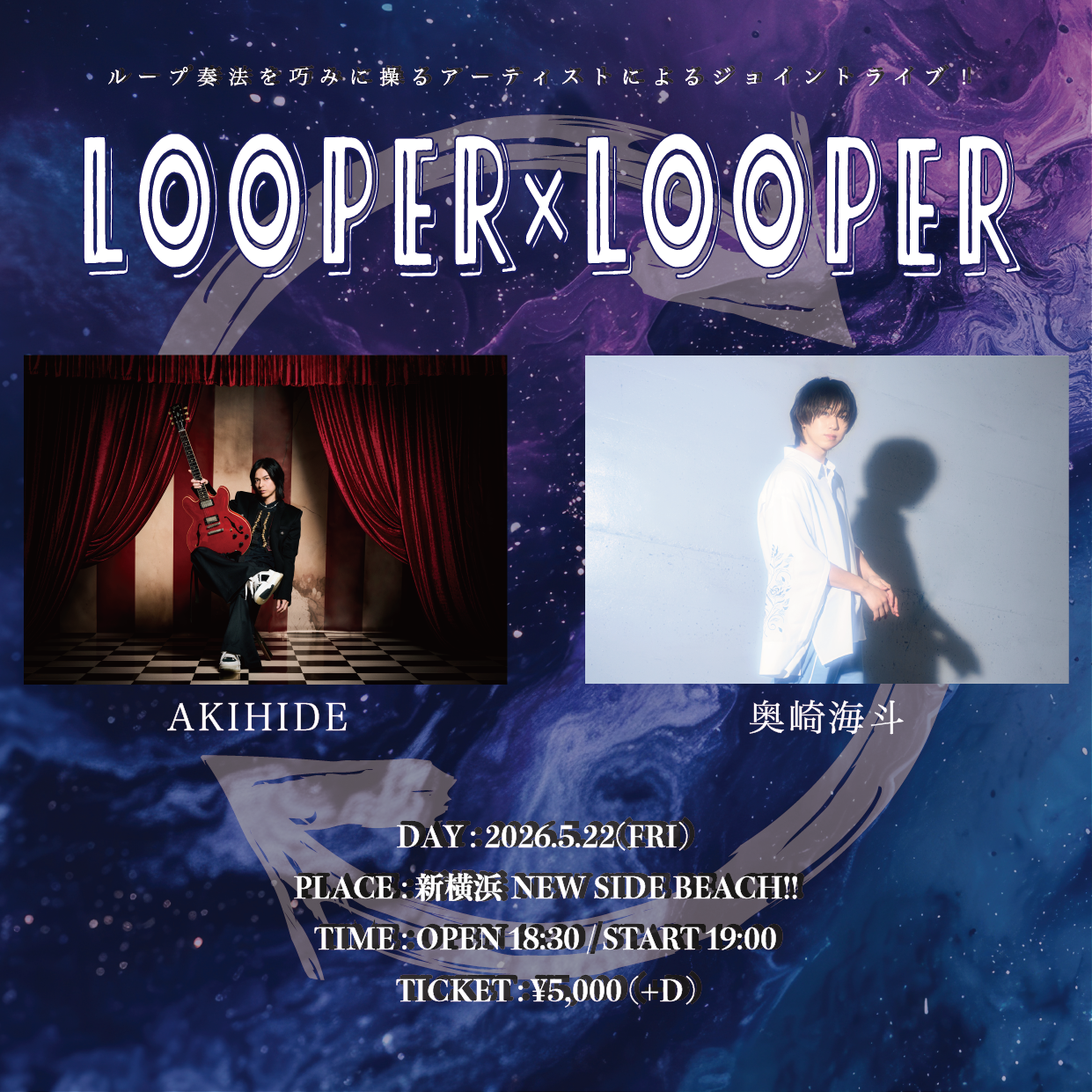 2026年5月22日(金)に新横浜 NEW SIDE BEACH!!で開催される「LOOPER×LOOPER」への奥崎海斗の出演が決定いたしました。