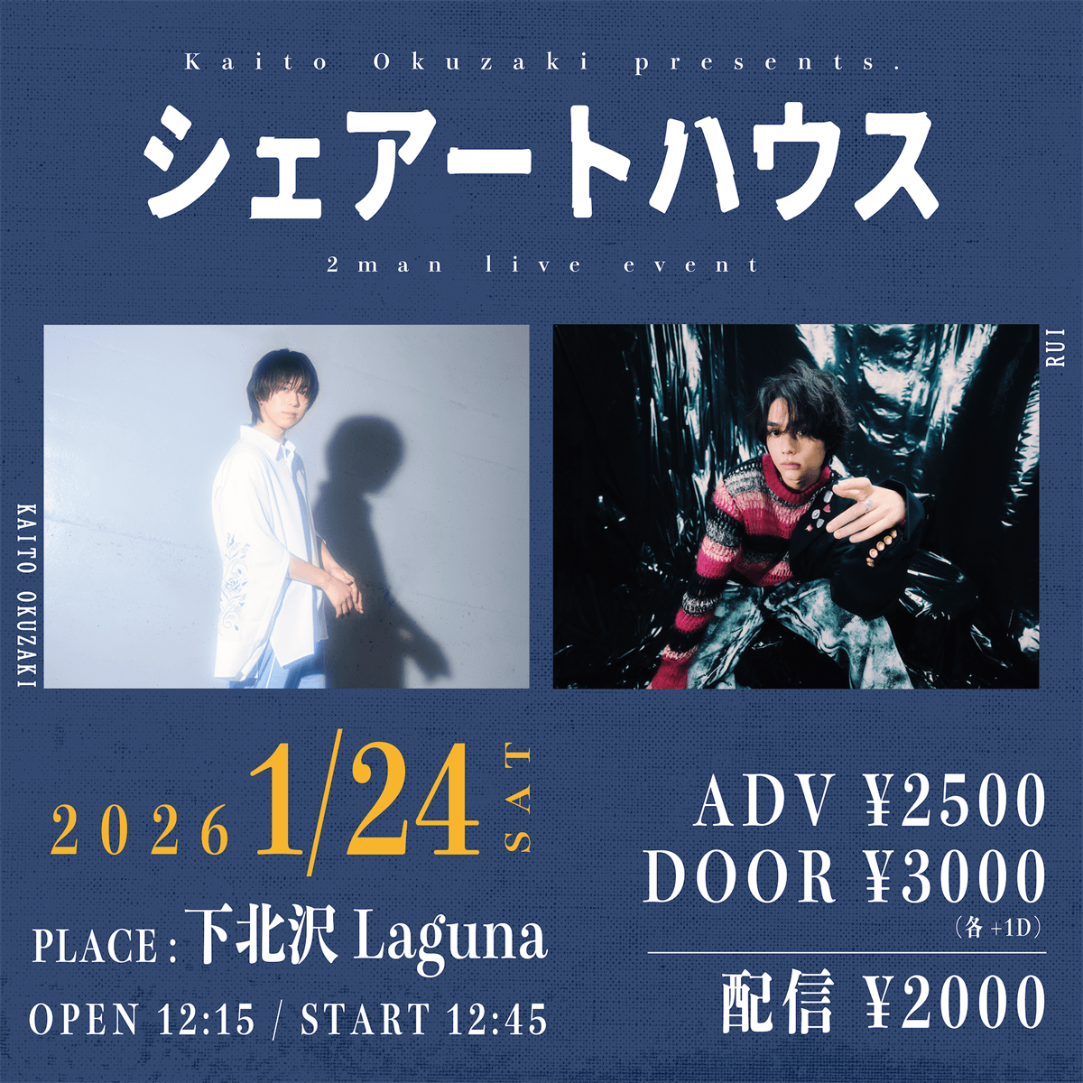 2026年1月24日(土)に下北沢Lagunaにて奥崎海斗 2man live event「シェアートハウス」の開催が決定いたしました!